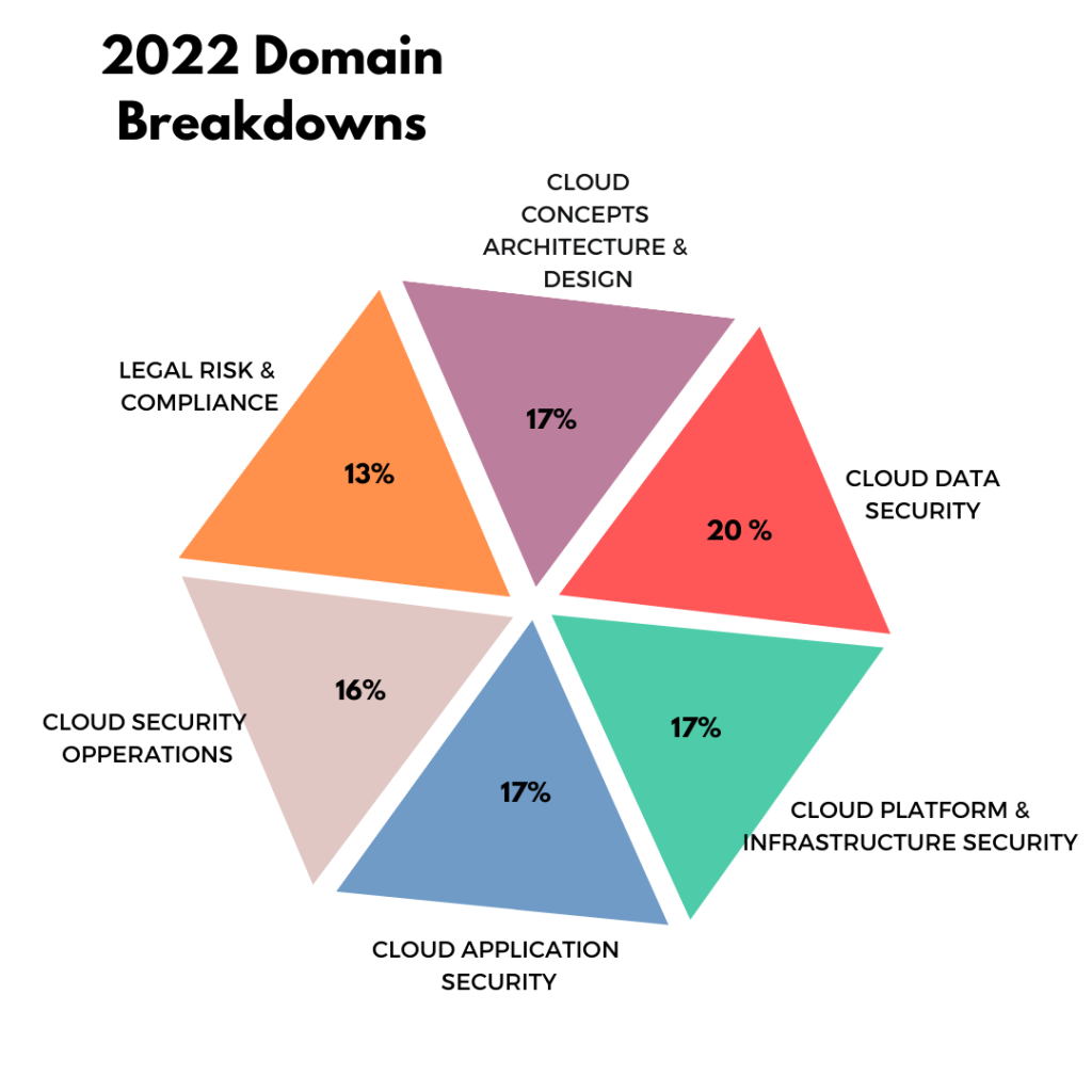 There were changes to various subdomains throughout the exam. For example, subdomain 2.4 added the concepts of Semi-structured data and Data location. Threat modeling was added to subdomain 4.3. The most significant change is that subdomain 5.3 now includes all topics from the old subdomains 5.2 and 5.3. The new subdomains includes all steps to build AND manage physical and logical infrastructures in a cloud environment, while building and maintaining we split in the old version. Though these changes are minor and the core concepts of cloud computing remain the same.