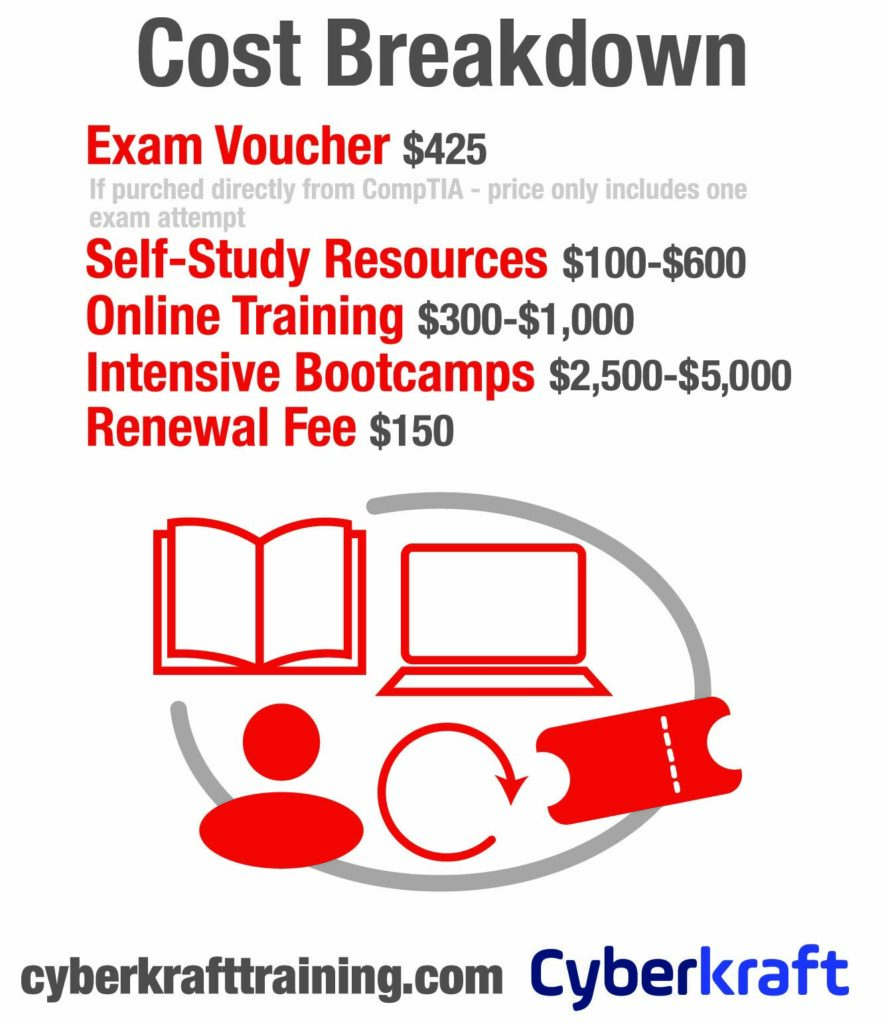 The CompTIA Security+ certification requires an exam fee of $425, along with additional costs for study materials, training courses, and potential retakes. While hidden expenses such as the time commitment and travel can add up, the investment in Security+ certification consistently proves its value.
