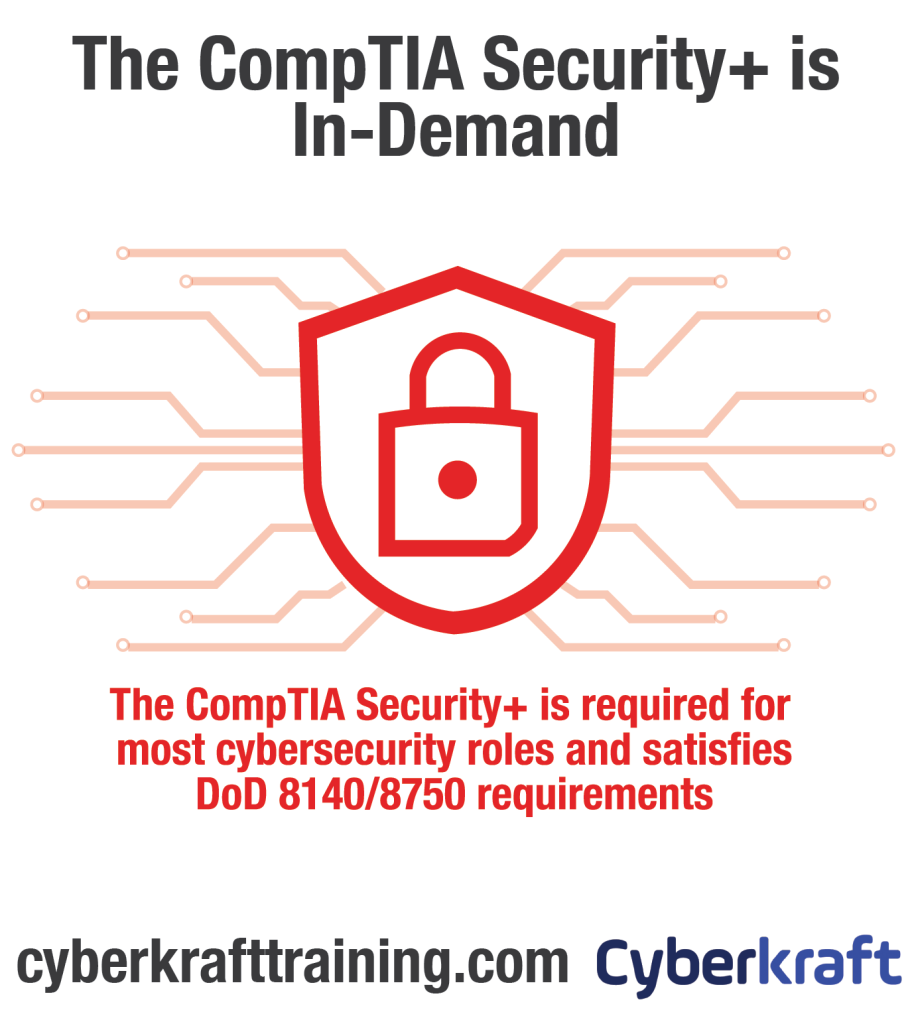Whether you’re new to the industry or seeking career growth, earning the CompTIA Security+ Certification can open doors to exciting opportunities in the ever-expanding cybersecurity landscape. Get started with Cyberkraft today and earn your CompTIA Security+ Certification.