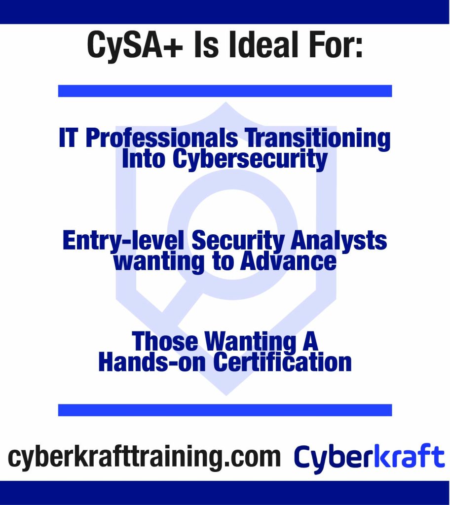 - How Cyberkraft can help you pass the CySA+ Certification exam on your first attempt.